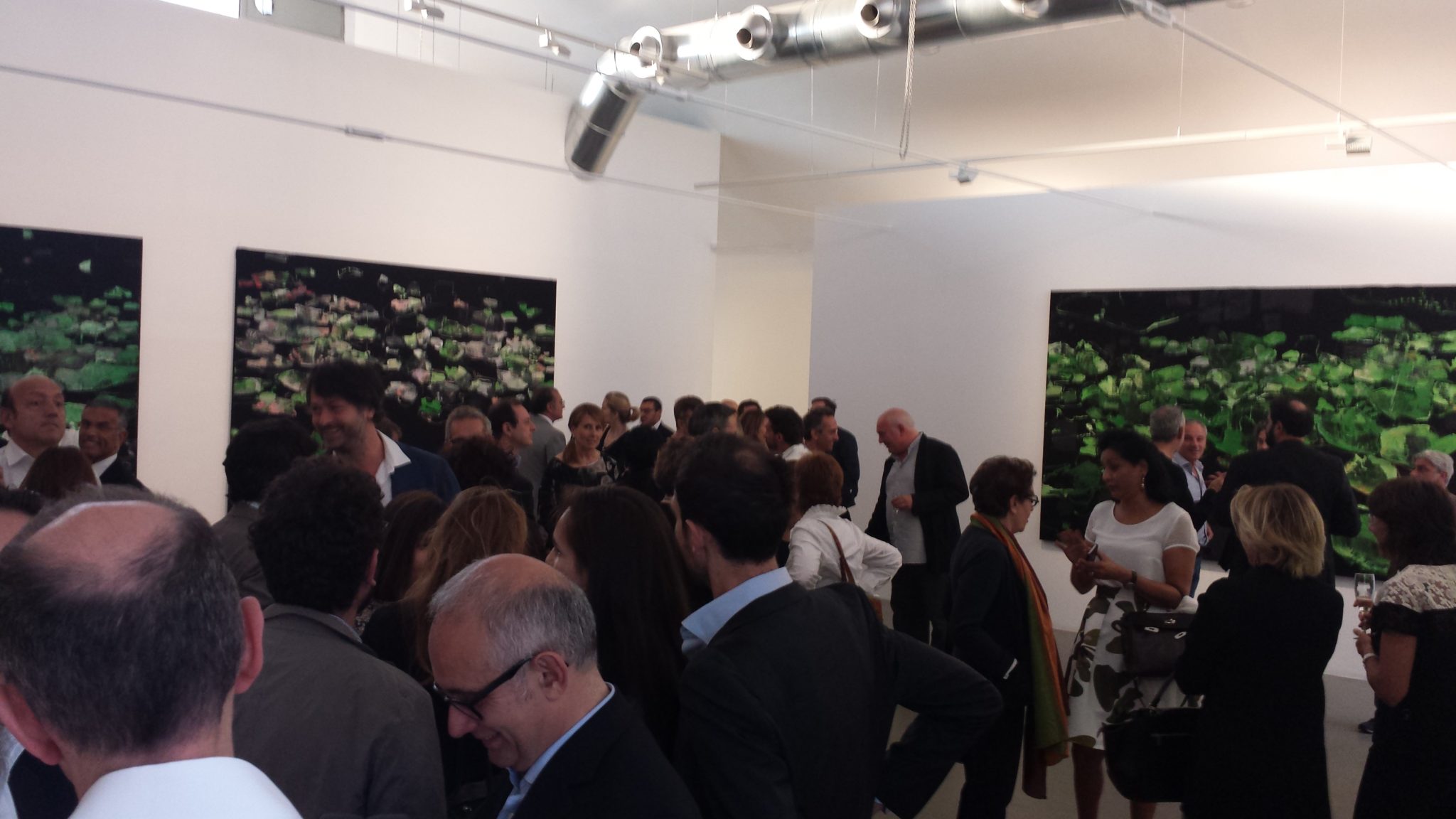 Il Frangi milanese si e ci rassicura ripensando il tema del giardino e del bosco (nel caso dei dipinti al piano terreno, dei dintorni di Ansedonia) in chiave antroposofica, se così si può dire. Sono boschi e laghi di ninfee pervasi di uno spiritualismo convinto, tale da controbattere con grande efficacia al fenomeno del dato oggettivo della tela, che raramente si offre così percepibile, specie negli esemplari migliori, ovvero il grande trittico di quadri “rossi” del 2014 composto da Tarajal, Heliconia Paradise I e Ansedonia I e del solingo e solare Bel Air del 2015, mentre al piano superiore è difficile, ma possibile, stabilire il primato dell’imponente Ninfee III (2014-2015) e dei piccoli ma preziosi Alles ist Blatt III e Alles ist Blatt IV del 2015.