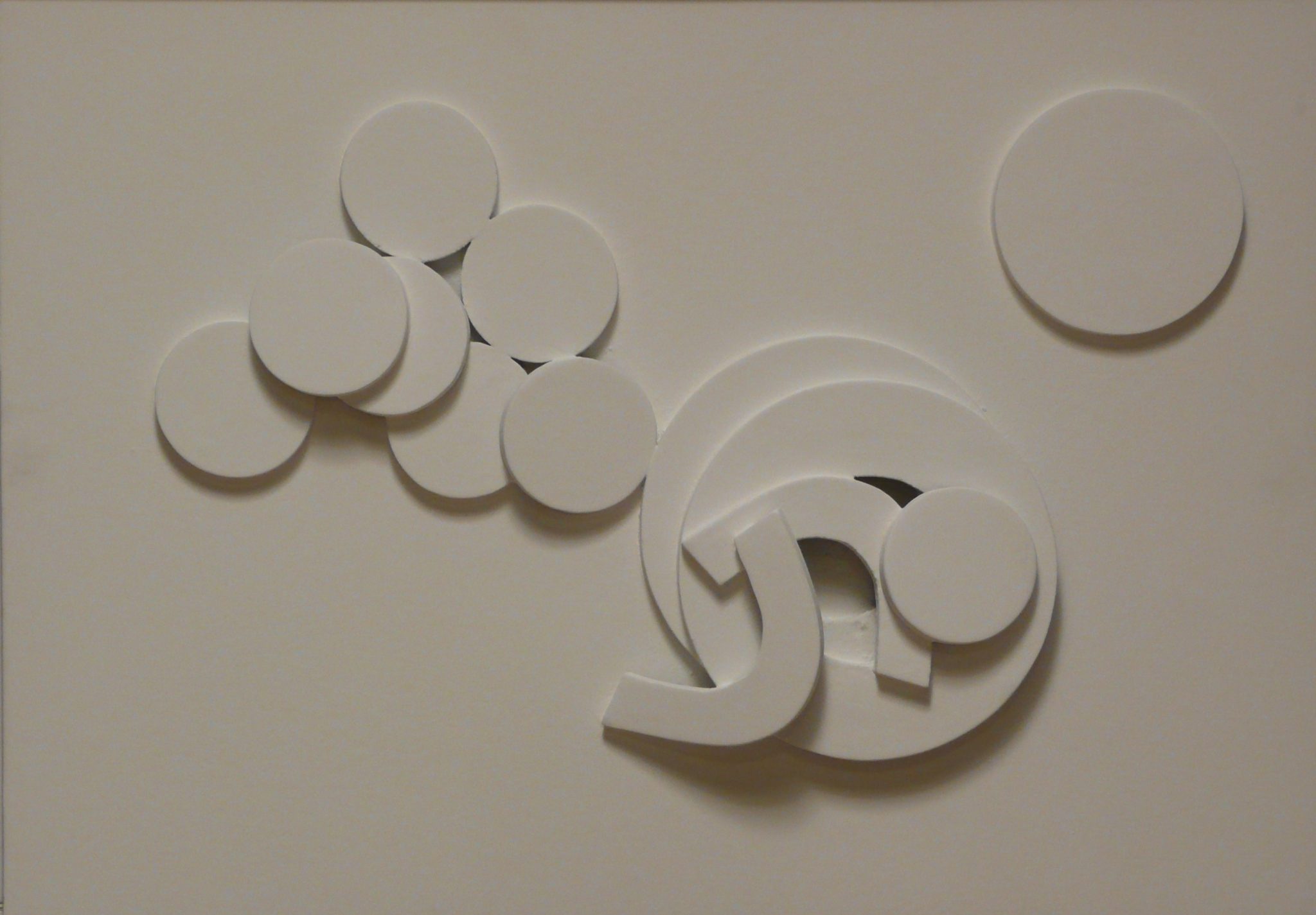 rilievo e idropitture su legno, cm 52,4×72,7×5