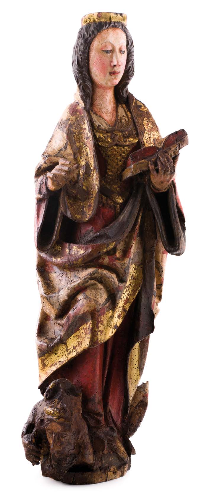 Del periodo gotico si presenta un candeliere in bronzo del XIV secolo e una maestosa statua in legno della fine del XV secolo rappresentante Santa Caterina d’Alessandria, attribuita al Maestro Alejo de Vahía. Verranno messe in vendita anche una Passione di Cristo (rilievo in legno intagliato, dipinto e dorato di Scuola Castigliana), un bellissimo San Sebastian e una Vergine col Bambino, tutto del XVI secolo.