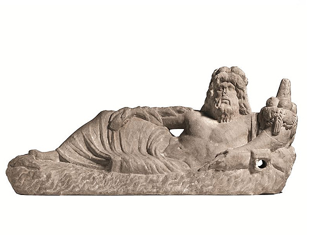 Nilo, III sec. d.C. in marmo bianco venato scolpito e levigato, cm 98x25x46
