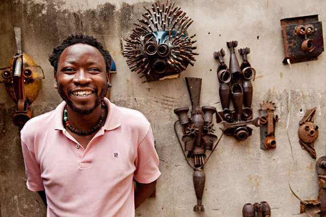 Un’ingiustizia, in qualsiasi luogo sconfinato si verifichi, non può che interessare tutti. Le armi creano schiavitù perché nella paura si insinua la rivendicazione del potere abusivo che rimpiazza la scelta, libera e individuale. Un trono concepito e realizzato con reperti bellici in Mozambico, terra di colonialismo europeo prima e di guerra civile poi , è l’opera di Gonçalo Mabunda che sulla memoria del suo paese ha costruito un altare, simbolo dell’assurdità di un conflitto che ha isolato lo stato africano per anni creando povertà e dittatura.