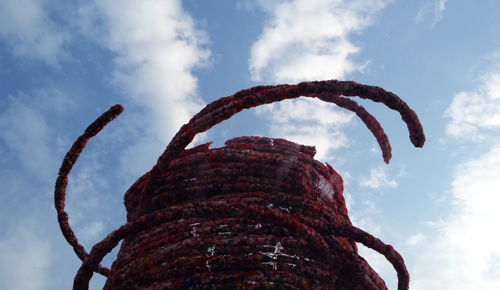 Dopo l’Unesco a Parigi, la Biennale di Venezia, la Gran Via di Madrid, il Maxxi di Roma e il Palazzo dell’ONU a New York The Garbage Patch State approda a Mostrami Factory @Folli 50.0: l’installazione Vortice, una grande tromba d’acqua che porta con se una miriade di tappi di bottiglia di plastica in un coloratissimo vortice alto sette metri, opera dell’artista Maria Cristina Finucci che da anni è impegnata in un percorso creativo, ma anche educativo e d’informazione su uno dei fenomeni di inquinamento più importanti del pianeta causato dai rifiuti plastici dispersi negli oceani.