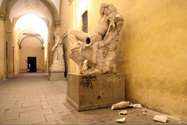 Statua greca danneggiata all'Accademia di Brera a Milano