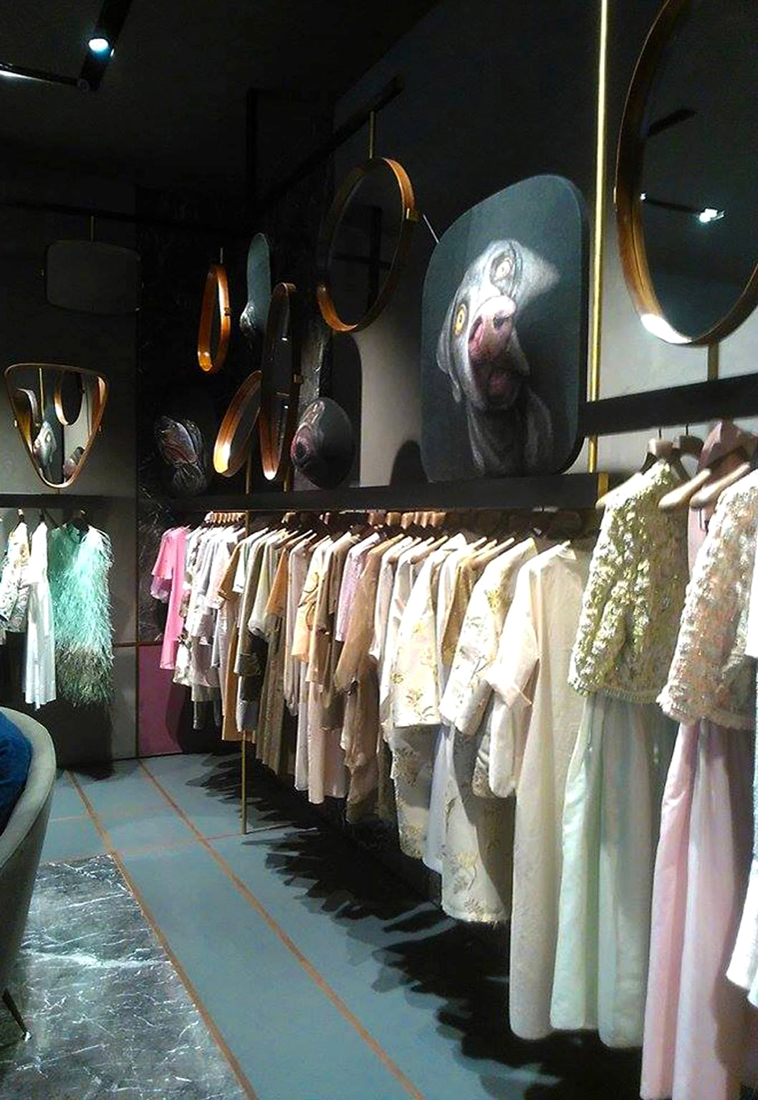 Li accomuna il nome e soprattutto l’ingegno, tradotto poi in differenti maniere. La moda di Maurizio Pecoraro, l’arte di Maurizio Cariati. Quando i due Maurizio si incontrano il risultato è una miscela creativa di eleganza al quadrato, prodotto di soggetti e concetti delle rispettive opere. Un connubio formidabile che trova la sua migliore espressione nel flagship store del primo con l’apporto ad arte del secondo. “A spasso con stile”. L’eleganza fatta a boutique espositiva, quando l’arte incontra l’alta moda e viceversa. Sinergia geniale. I musi paciosi e curiosi dei Weimaraner si intrufolano tra i capi in vetrina andandosi a incasellare quatti quatti tra gli arredi dello spazio. Cani site-specific a guardia delle “opere” di Pecoraro, che Cariati ha “ricamato” su misura per il cosiddetto concept store.