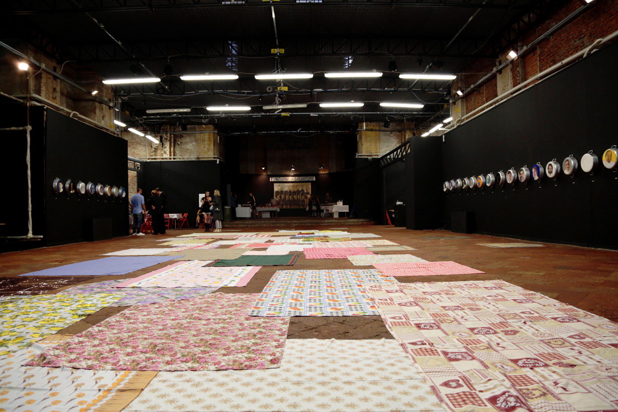 Una grande installazione di tovaglie, portate dagli ospiti, ha fatto da set alla ex chiesa in cui è stata riprodotta la Trattoria e sono state proiettate in loop centinaia di foto per raccontare vent’anni del progetto di Nicola Salvatore che ha indagato i legami tra arte e cibo e ospitato protagonisti della scena contemporanea.