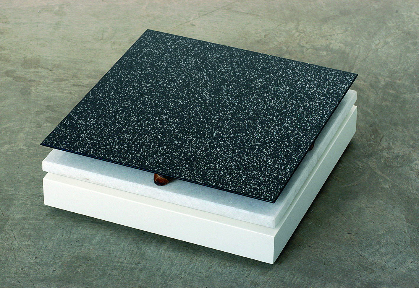 legno laccato, marmo bianco cristallino, vetro retropittura, cm 36 x 36 x 12
