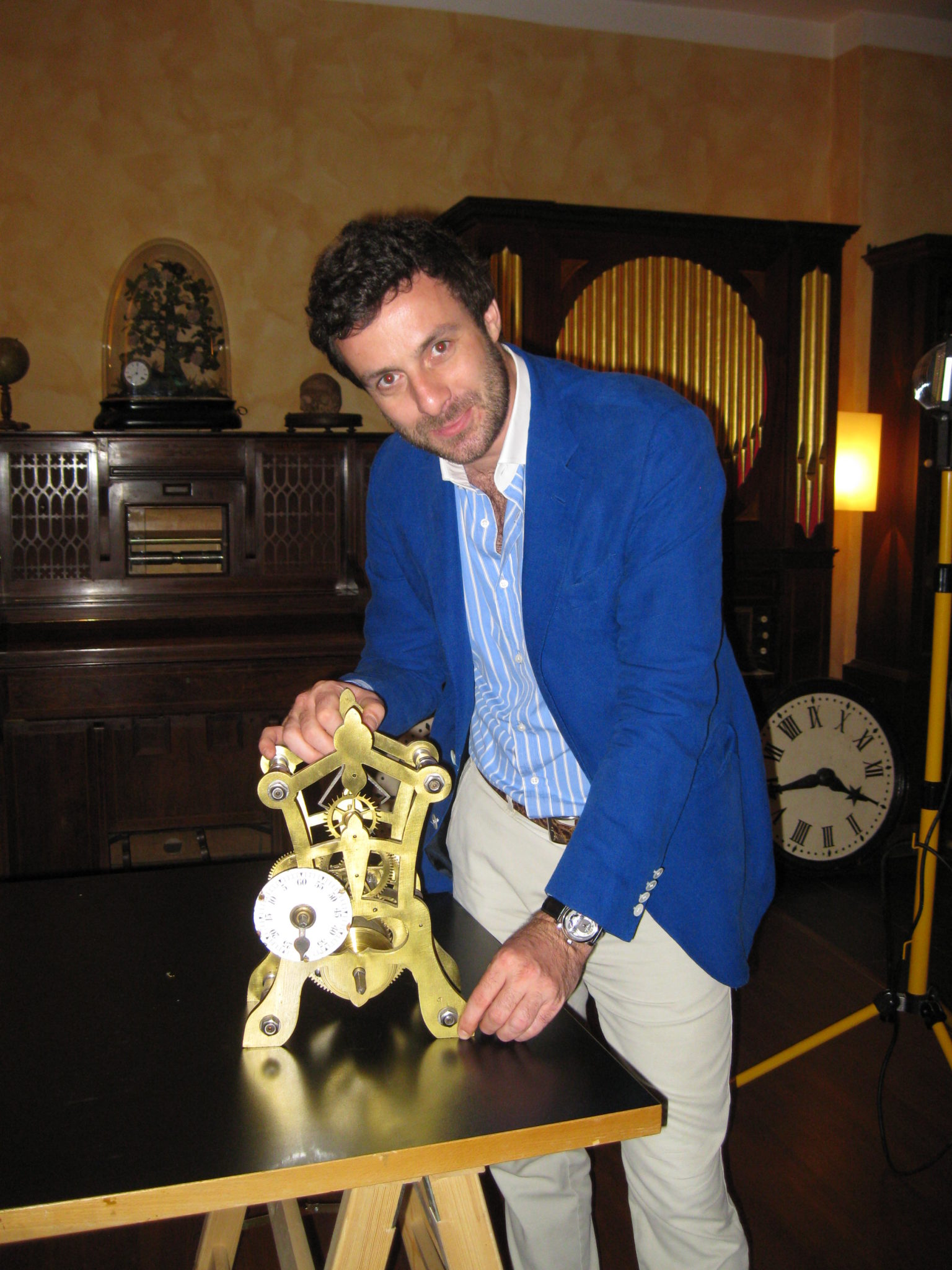 Io. In famiglia non c’è nessuno che si interessi né di orologeria né di musica, almeno nelle ultime generazioni. Ma io sin da piccolo sono stato attratto dai meccanismi e dalle cose meccaniche, al punto che tentavo di smontare e rimontare i piccoli orologi che c’erano in casa creando enormi disastri. Contemporaneamente ho iniziato a studiare musica: volevo suonare l’organo da chiesa. Ho preso lezioni di pianoforte e poi sono passato all’organo. Ad 11 o 12 anni suonavo l’organo durante la messa, a Milano ma soprattutto in vacanza in Liguria. In vacanza al mattino andavo in spiaggia e nel pomeriggio prendevo l’autobus (perché i miei non mi accompagnavano a suonare l’organo) e andavo in tutti i paesini liguri a disturbare i preti per convincerli a farmi suonare l’organo delle loro chiese. Un giorno la mia passione per i meccanismi mi ha portato a chiedere al prete il permesso di salire sul campanile perché volevo vedere come era fatto il meccanismo del campanile. Titubante, mi ha fatto salire. E ho scoperto che l’orologio che si vedeva all’esterno era comandato da un piccolo motorino elettrico, mentre il vecchio meccanismo, meccanico, era stato abbandonato e stava per essere buttato via. Allora li ho fermati e gli ho detto: lo prendo io. Quello è stato il mio primo pezzo. Avevo 14 anni.