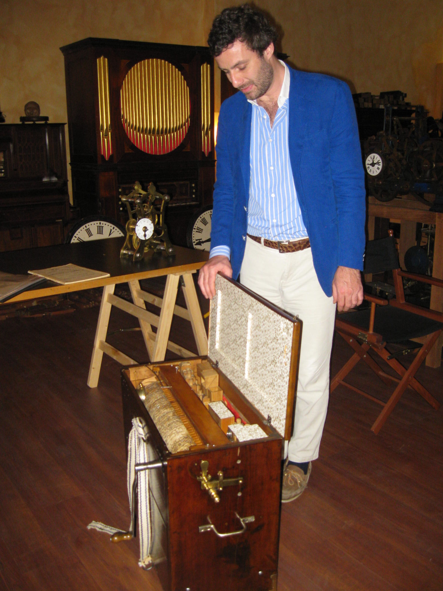 La riparazione del meccanismo ad orologeria riesco a farla io – io mi diletto nel restauro degli orologi. Ma la parte musicale è molto più complessa. E purtroppo in Italia non c’è nessuno che sia in grado di occuparsene. Io tento di comprare gli strumenti già in ordine, almeno per la parte musicale. Ma se necessitano di restauri o riparazioni li spedisco in Svizzera o in Inghilterra. Il restauro di questi oggetti è complicato perché coinvolgono due maestranze: il costruttore di strumenti musicali e l’orologiaio. Difficilmente c’è una figura che sa fare entrambi. Io un pochettino ne so e qualche antiquario mi affida degli orologi con dentro meccanismo musicale anche piuttosto importanti, perché sanno che io me ne intendo e mi diletto.