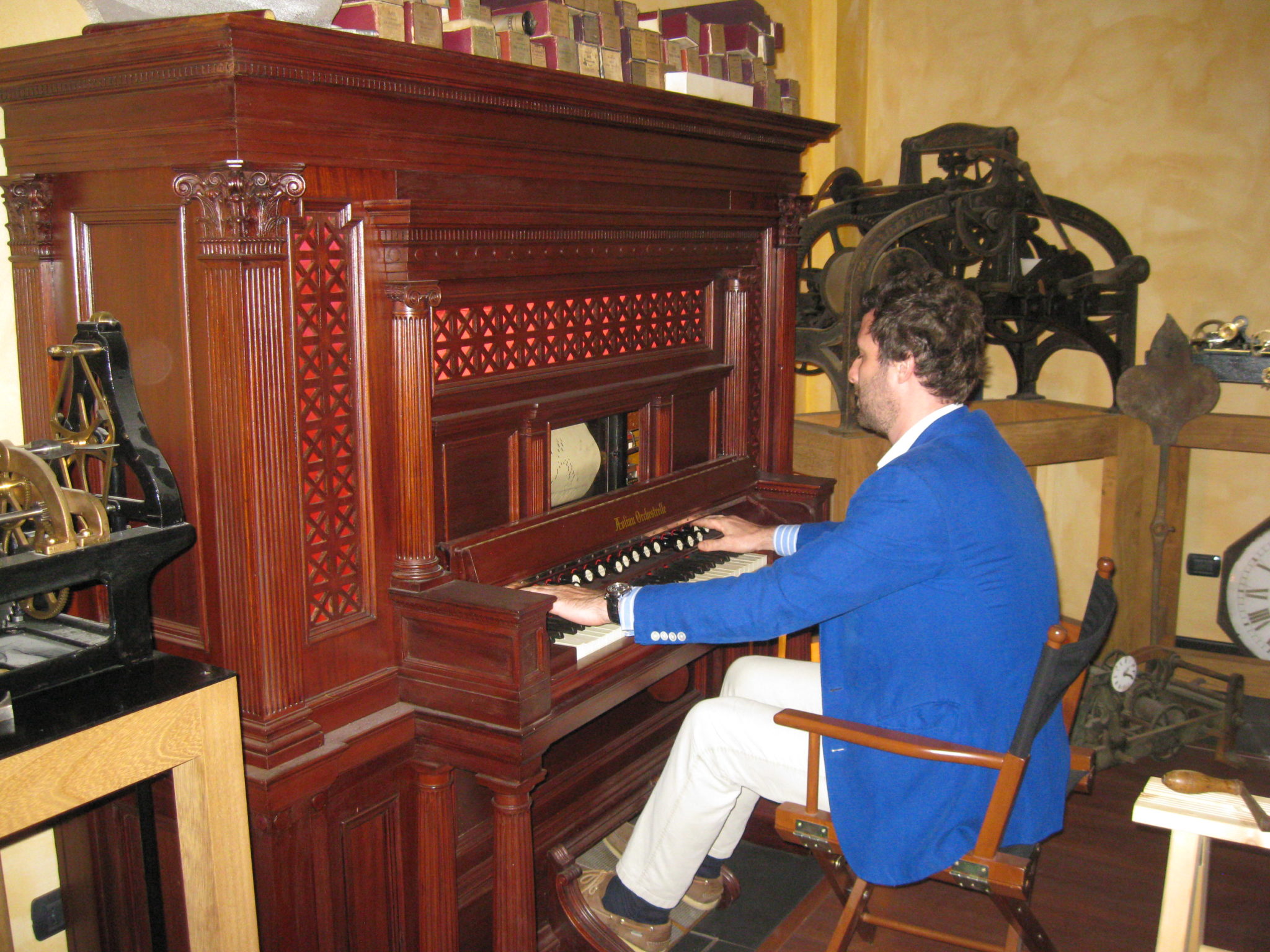 Era un organo a canne, grosso con la tastiera e tutto, ma al suo interno aveva anche un sistema automatico che lo rendeva uno strumento musicale automatico. E’ stata la fine. Non ho più ragionato. E’ un pezzo del 1913, costruito a New York a trazione elettrica. Nel 1913 la trazione elettrica era già in uso da un po’ di anni, ma si trattava comunque di uno strumento tecnologicamente molto avanzato. Guido Uccelli di Nemi l’ha acquistato nel 1937 o ’38 da un avvocato di Genova. Anche Guido Uccelli era appassionato di musica e voleva creare in casa sua, e ci è riuscito, un polo musicale dove i bravi musicisti si riunivano a suonare per le persone della buona società di allora di Milano. Quest’organo aveva una particolarità: stava in un salone che aveva un soppalco dove era installata la console, ovvero la tastiera dove si suonava, mentre tutto il meccanismo stava in cantina. Si suonava nel salone, ma la musica arrivava da sotto, grazie a due grosse botole che si aprivano nel salone, ma l’organo non si vedeva. Era molto discreto: senti e non vedi. Dicevo, verso i 13 anni l’ho visto la prima volta, poi sono andato a rivederlo a 17, ma lo strumento non funzionava perché l’ingegnere era morto nel ’17 e gli eredi l’hanno suonato sempre meno e poi un allagamento della cantina aveva danneggiato l’organo gravemente. Rivedere quell’organo ha aumentato il mio entusiasmo e ho iniziato a raccogliere informazioni su questo tipo di strumenti e sulla ditta che lo aveva prodotto, la Eolian Company di New York. E ne ho fatto un’ossessione. Ho iniziato ad acquistare libri e prodotti pubblicitari, tutti i cataloghi, così vedevo come erano fatti. Avevo questa ambizione. Nella fantasia più sfrenata sognavo di possedere quest’organo, ma non avrei mai pensato di riuscire a possederlo veramente. Però poi mi sono fatto coraggio verso i 25 anni quando ho conosciuto meglio sia Giovanna che Franco Majno e siamo diventati amici. Ad un certo punto ho detto loro che ero interessato a quell’organo che era la mia ossessione dall’età di 11 anni e ho chiesto se qualche erede della loro famiglia fosse interessato allo strumento. Dopo aver consultato tutti gli eredi mi hanno detto che la persona che lo possedeva fisicamente era una delle figlie dell’ingegnere Uccelli, ormai anziana e malata, che non si è mai sposata e non aveva figli. Hanno anche confessato di essere preoccupati per il futuro di quell’organo perché nessuno dei nipoti Uccelli si sarebbe preso l’incarico del restauro costosissimo e vedendo la mia passione, mi hanno detto che ne avremmo riparlato dopo la morte della figlia dell’ingegnere Uccelli. Io ero molto contento. Era sempre un forse, se, ma, però la speranza c’era. Qualche anno dopo ho appreso da un quotidiano che la signora Uccelli era mancata. Sono andato al funerale a Sant’Ambrogio e le ho suonato l’organo. Quando ho finito di suonare si sono avvicinati a me Giovanna, Franco e tutti gli altri nipoti, che non sapevano che sarei venuto. Mi hanno ringraziato e mi hanno detto che l’organo del nonno sarebbe stato mio. Me l’hanno regalato. E nonostante la triste ricorrenza, io ero felicissimo per il fatto dell’organo. Oggi lo strumento è in campagna, tutto smontato per via del restauro che è talmente complesso, difficile e costoso che devo farlo con molta calma.