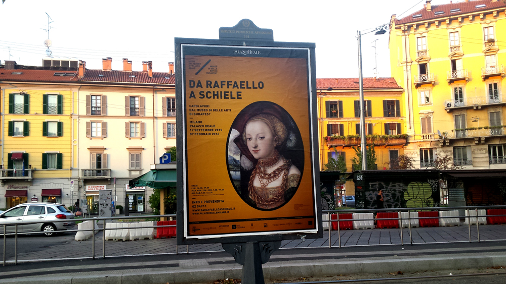 “Da Raffaello a Cézanne” con un’algida faccina ammiccante e sensuale (quanto spietata) della Salomé di Cranach (e appena lì sotto al cartellone immaginiamo scorrere fiumi di catene dorate e sangue di testa decollata del Battista). Incidenti, tamponamenti a catena, sterzate clamorose. Goldin è a Milano?!?! Chi non è sobbalzato dal sedile della macchina o dal sellino della bicicletta stramazzando a terra al sol pensiero? Altro che le chiappe ammiccanti di Belen che fecero tanto scalpore in Buenos Aires e qualche “ops, ti son andato in culo”, sbattendo il cofano contro l’automobilista davanti, intenti a guardare la sudamericana al muro. Qui sono migliaia di faccini perfidi della bella e tremenda principessa giudaica – sfrattata per qualche tempo da casa sua, il Museo di Belle Arti di Budapest in restyling completo fino a fine 2017, e immigrata in giro per il mondo pagante (nessuna prostituzione magiara) con la compagine museale – dipinta da un “vecchio” bavarese, con tanto di fatidica scritta ancora più ammiccante e spregiudicata che recita “Da Raffaello a Cézanne” appunto.