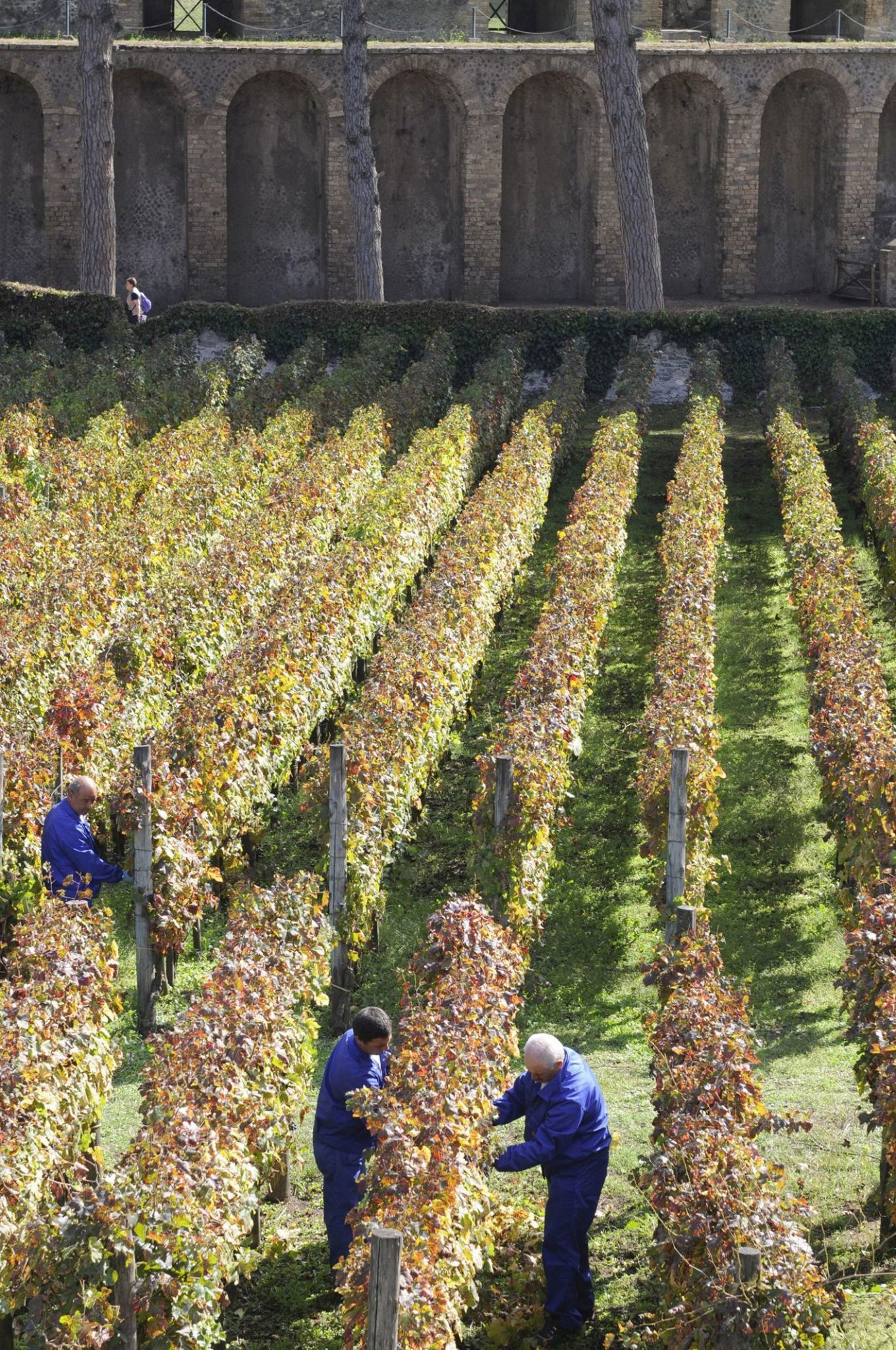 Nascono così i 5 vigneti dell’Oste Eusino, della Casa della Nave Europa, dell’Osteria del Gladiatore, del Foro Boario, della Casa del Triclinio Estivo, per una superficie complessiva di circa 1 ettaro. Qui, con le stesse tecniche di coltivazione precedenti alla grande eruzione, sono stati impiantati i vitigni autoctoni Piedirosso e Sciascinoso, scelti sulla scorta di ritrovamenti archeologici, studi botanici, bibliografici e iconografici condotti anche sugli antichi affreschi pompeiani.