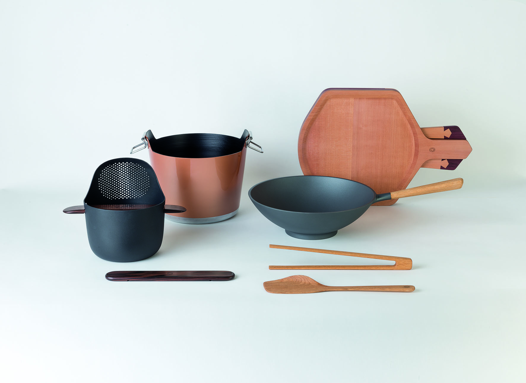 Un gioco di forme e luci, impugnature e materiali portato avanti grazie alle collaborazioni con designer autorevoli come Alberto Meda, Marc Sadler e Giugiaro Design. Si può trovare anche un fil rouge che fa da guida in questa riflessione sul cibo e sulla sua preparazione non solo come elemento nutritivo ma anche come mezzo espressivo che rende più facile la comunicazione e, con essa, l’evoluzione.