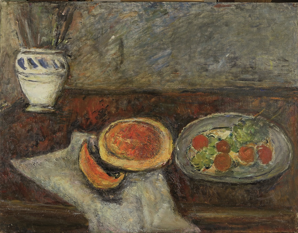 Il nucleo dei dipinti di Tosi in mostra appartiene agli eredi dell’artista e si data in un arco di tempo che va dagli anni Trenta al 1956, anno della sua morte. Tosi non datava infatti le sue opere ed è difficile tentare di farlo ricercandovi uno sviluppo stilistico, poiché, come sottolinea Maddalena Paola Winspeare, ricordando le parole di uno dei critici più entusiasti dell’arte di Tosi, Giulio Carlo Argan, la sua pittura «più che lo svolgimento di un’idea, è un progressivo affinarsi del sentimento». Inoltre le sue nature morte, diversamente da quelle di tutti gli amici e colleghi presenti in mostra, sembrano composte di solo colore che si fa materia cromatica, stesa con grande libertà e con un esito sempre diverso. Per tale motivo seppure con tutti questi artisti strinse relazioni di stima ed amicizia, fu solo con de Pisis, anche grazie alle affinità dell’espressione artistica, che l’amicizia sconfinò nella complicità testimoniata dall’opera del pittore ferrarese, dove è evidente la dedica , da cui il titolo del dipinto, W Tosi.
