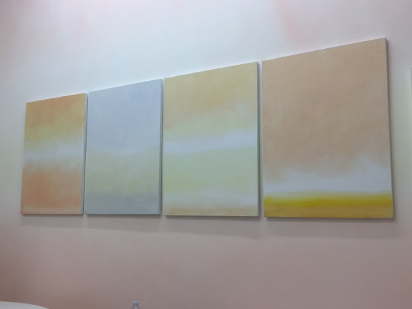 Dipingo con le mani, ossia stendo il primo strato con il pennello e poi quando sono soddisfatto dell’opera l’ultimo passaggio lo stendo con il palmo della mano, ed è li che si illumina l colore, accarezzandolo si illumina.