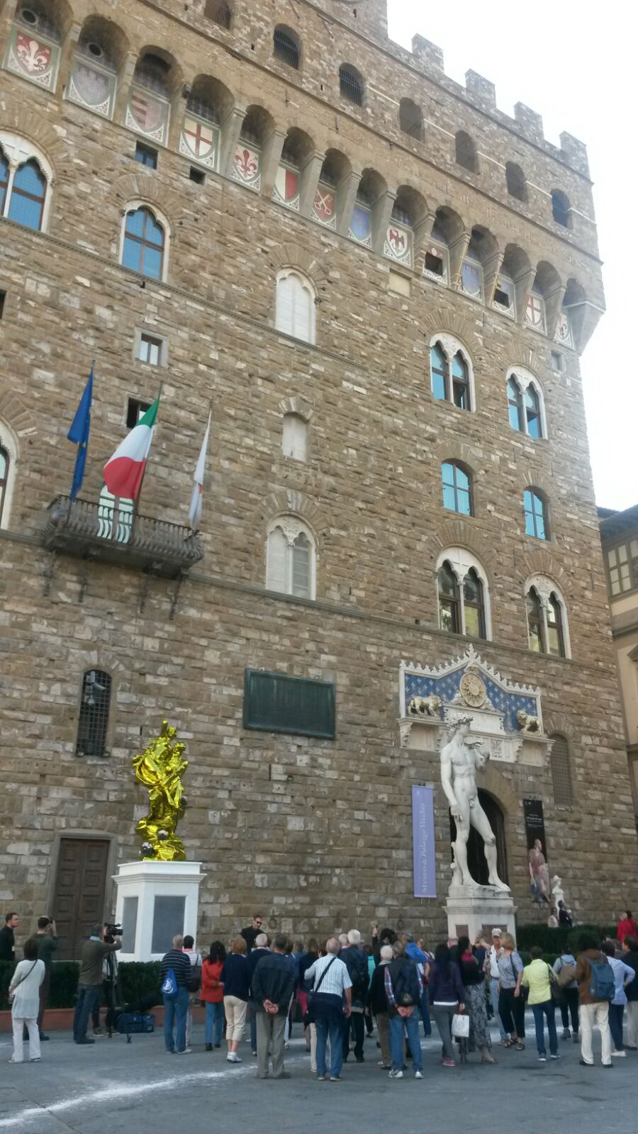 Ecco le foto della scultura “Pluto and Proserpina” in Piazza Signoria già dal 25 settembre. Da notare il dettaglio del basamento: quello della scultura di Koons richiama quello del David.