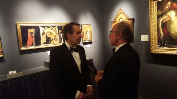 Jeff Koons alla Biennale dell’Antiquariato di Firenze con i galleristi italiani Fabrizio Moretti e Carlo Orsi