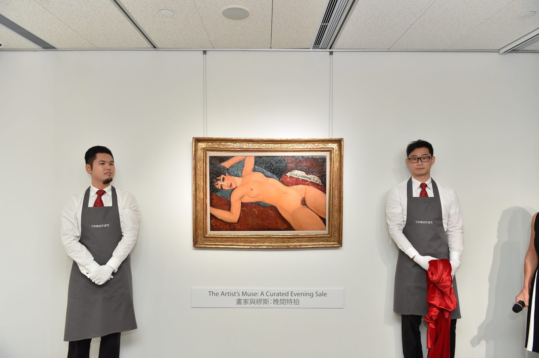 Modì vola ad Hong Kong. Nu couché (Nudo disteso) di Amedeo Modigliani – eseguito nel 1917-18 e parte di una serie di grandi nudi realizzati per Léopold Zboroswki – andrà all’incanto da Christie’s a New York il prossimo 9 novembre a una stima di oltre $ 100 milioni. In questi giorni si trova ad Hong Kong per una tappa del tour espositivo precedente all’asta. Ecco alcune foto dello svelamento dell’opera negli spazi della casa d’aste a Hong Kong:
