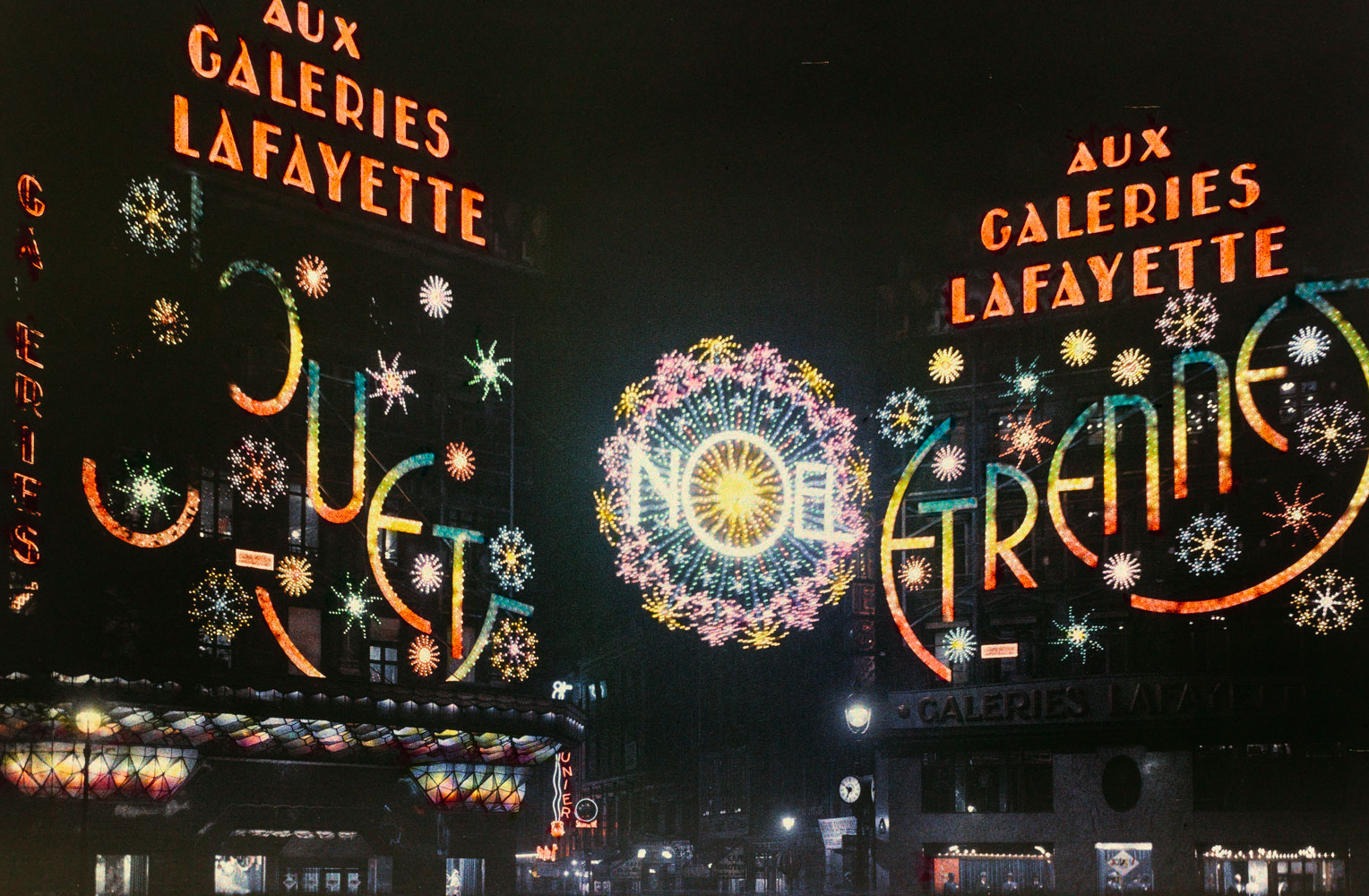 Le esperienze luminose di questo mago della luce seducono il fotografo francese Léon Gimpel. Appassionato di luminarie, Gimpel utilizza l’autocromia, ossia il primo procedimento di fotografia a colori brevettato e commercializzato dai fratelli Lumière. La sua tecnica consiste nel sovrapporre due scatti diversi, uno effettuato al crepuscolo e l’altro in piena notte allo scopo di restituire l’atmosfera e l’illuminazione notturna in tutta la loro potenza. Dall’insegna colorata alla pubblicità decorativa, l’industria dei giochi di luce prende le mosse dalle ricerche del chimico francese Georges Claude, inventore nel 1910 del tubo luminescente ad alto voltaggio (néon).