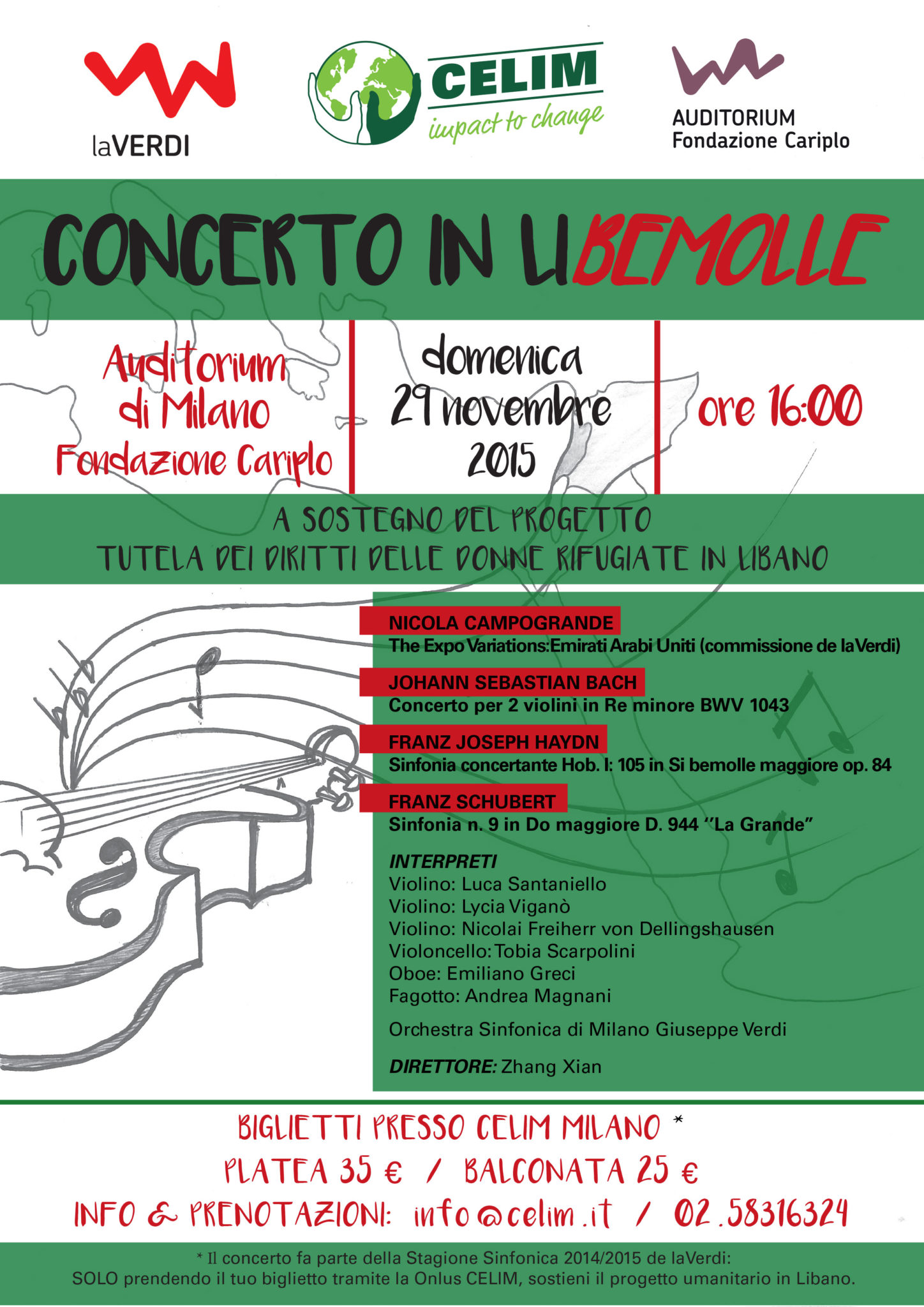 Con Siriani in Li…bemolle si rinnova per il quinto anno, domenica 29 novembre, presso l’Auditorium di Milano, l’incontro fra laVerdi e CELIM, fra musica classica e cooperazione internazionale, per un concerto benefico pomeridiano a sostegno del progetto Tutela dei diritti delle donne migranti e rifugiate in Libano.