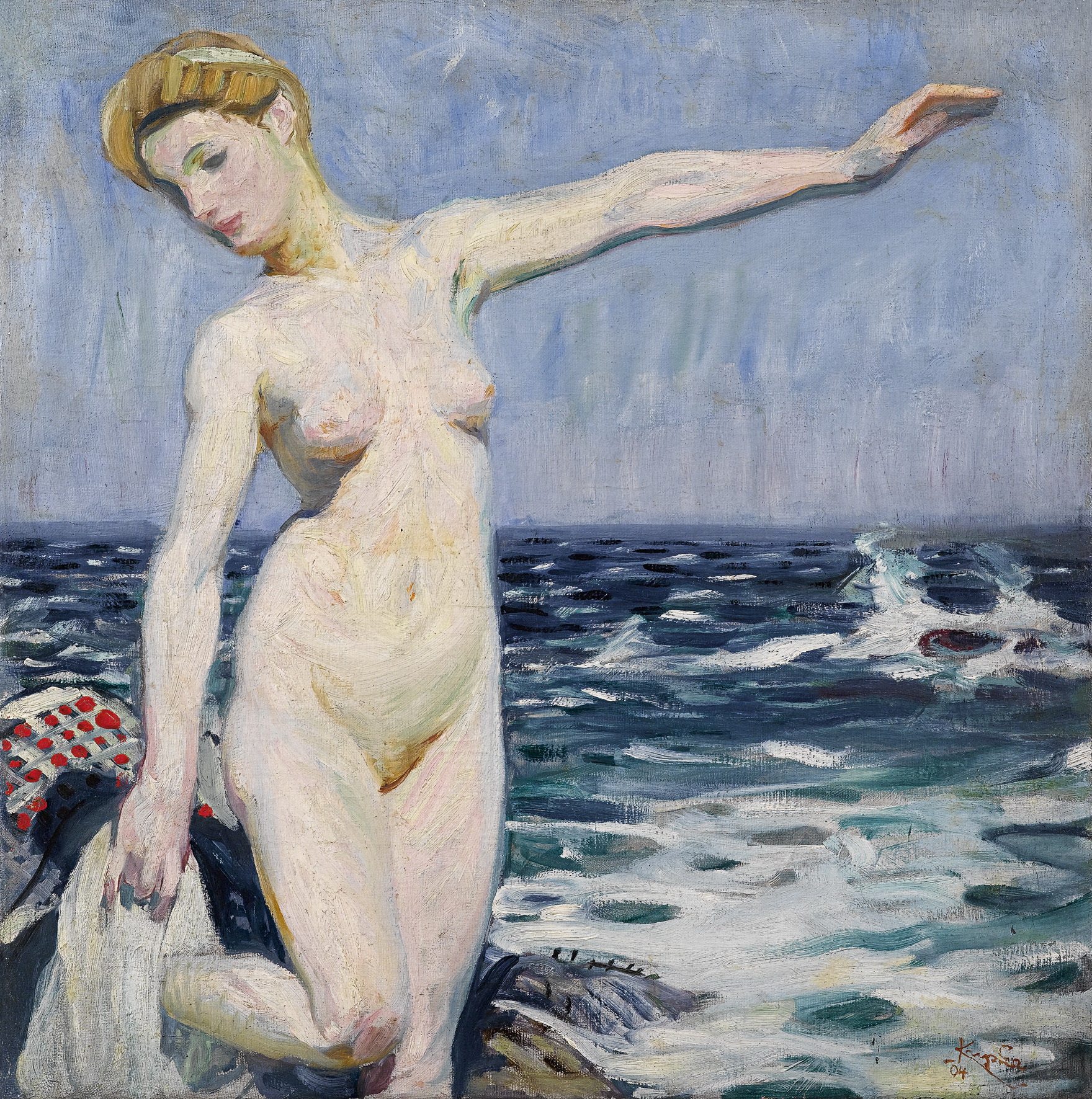 Con un motivo ancora legato al periodo Jugendstil, l’opera „Badende“ (Bagnante) del 1904 di Frantisek Kupka ha uno stile pittorico già proiettato verso l’era moderna (€ 100.000 – 150.000). In asta anche un’altra bagnante, questa volta in bronzo, di Georg Kolbe del 1926 e stimata € 60.000 – 80.000. Di Albin Egger-Lienz viene proposto un grande Fragment III (54 x 48 cm) della prima versione dell’opera „Der Totentanz von Anno Neun“ (La danza della morte dell’Anno Nove) del 1906/7, valutato € 70.000 – 120.000.
