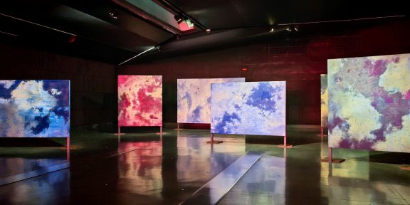 Spazio liturgico: in alto i volumi a croce aggettanti piombano dal cielo e impongono luce, sopra l’altare una pioggia di kitsch stellato fa muro… Restiamo umani: ad altezza uomo, le pareti squadrate si avvolgono nel filare disteso della linea. Fluidi passaggi di angoli, spigoli, incroci. Canti architettonici segnati dall’opera grafica. Orizzonti di linee che si rincorrono, intersecano, sfiorano per 150 metri. Tendono. Tracciano Nature, alture che si susseguono fino a che il Segno si spezza, si apre: ti prende per mano, accompagna, trasporta… dentro/fuori. Interno/Esterno. Dialettica dell’opera. Sintesi del di-segno. Natura/Artificio.