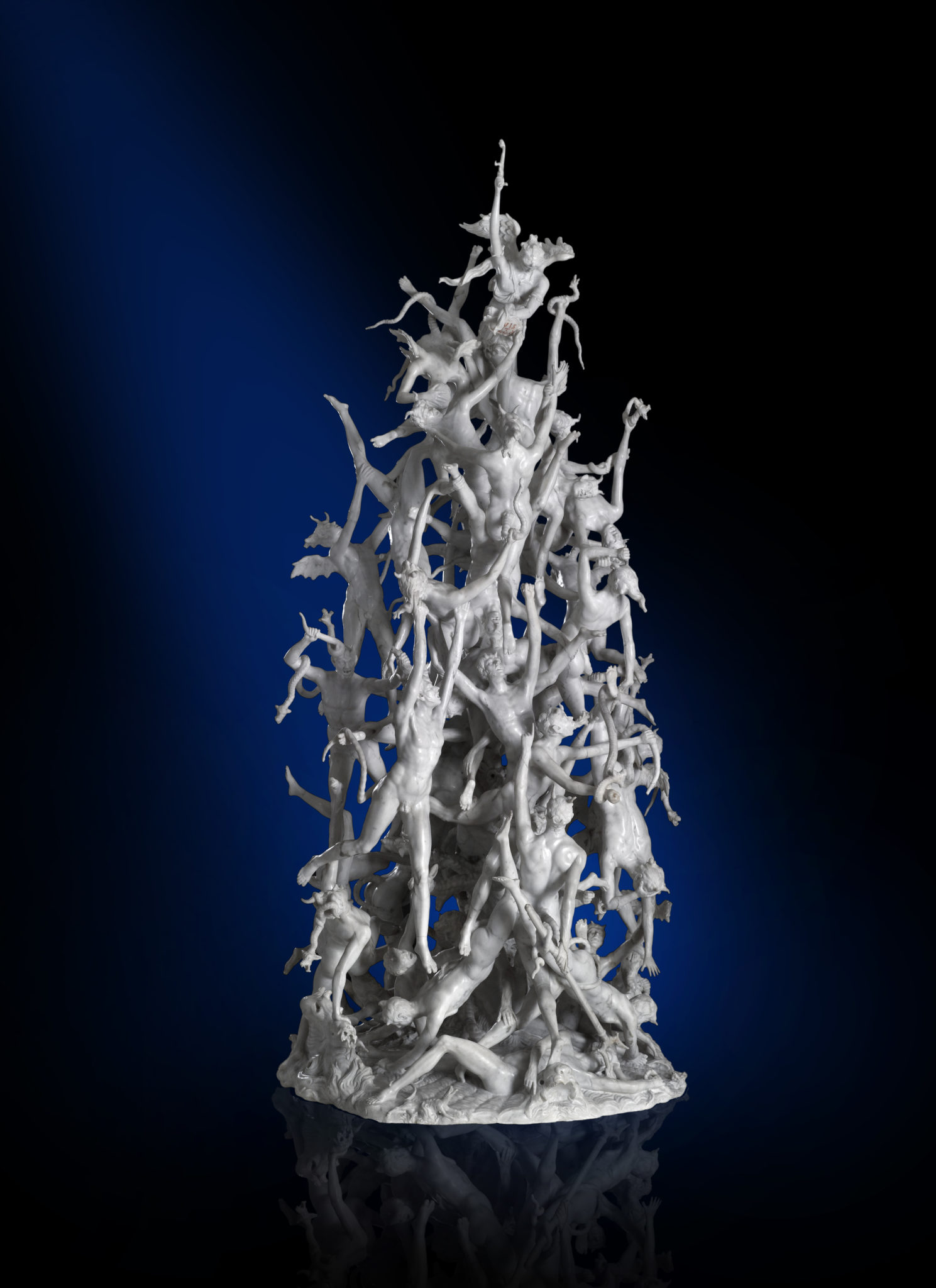 Una vera e propria piramide di sessanta figurine scolpite in un unico pezzo di marmo di Carrara, alto quasi due metri: La caduta degli angeli ribelli dello scultore padovano Agostino Fasolato si trova al centro della sala di Palazzo Leoni Montanari a Vicenza. Nel gruppo scultoreo è rappresentato il combattimento tra l’esercito del bene e quello del male, comandati rispettivamente dall’arcangelo Michele e da Satana, così come raccontato nell’Apocalisse di Giovanni.