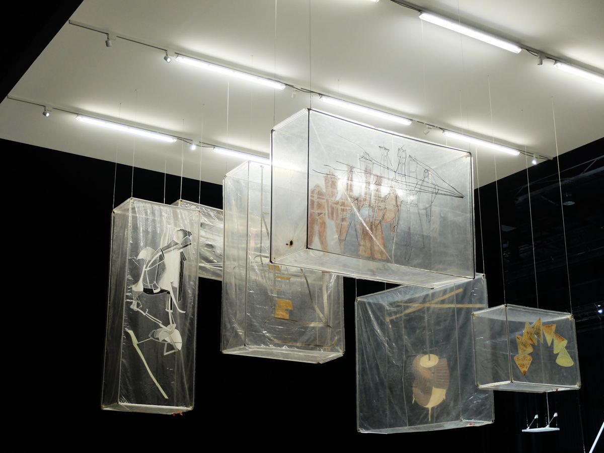 Siamo, quindi, all’interno di una conversazione. Motivo per cui troviamo set elements for “Walkaround Time” 1968, di Jasper Johns. Sette strutture trasparenti che riproducono immagini de Il Grande Vetro di Marcel Duchamp, ideate per l’omonima performance del coreografo americano Cunningham.
