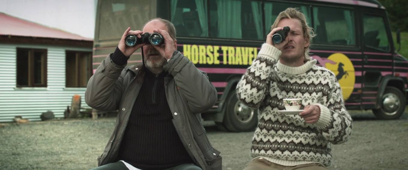 I segmenti di Storie di cavalli e uomini sono ambientati in una valle – dove il numero di funerali è forse un po’ troppo alto per una popolazione già esigua come quella islandese – i cui abitanti si passano a turno i ruoli di protagonisti e osservatori. Ogni storia è punteggiata dal luccichio dei binocoli che proviene dalle altre case. I vicini sono un coro che sornione osserva e commenta gli eventi di turno (a differenza dell’occhio distaccato, quasi sovrannaturale dei cavalli).