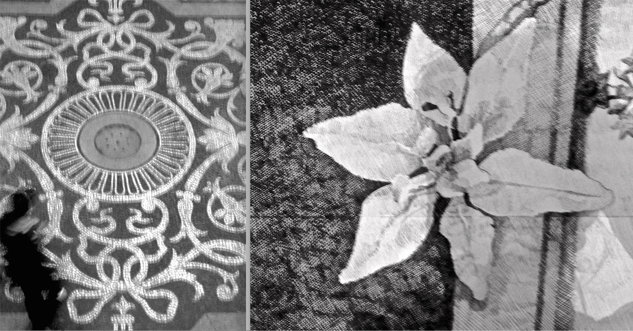 L'”immagine non può sfuggire“, e si insinua nei “rinascimenti” quattro e ottocenteschi del Bagatti Valsecchi inchiodata nello scatto, nel disegno e nell’olio. Rapito dai dettagli della Casa Museo, l’artista del gioiello Giampiero Bodino si fa artigiano delle arti immortalando graficamente e fotograficamente le minuzie e i riflessi “del posto” con un lavoro “sul posto”: una settantina di opere culminanti nell’armatura bianco e nera splendente resa a lame di tratteggio riposta nella Galleria delle Armi tra lance e alabarde. Dal particolare all’universale, schiaffeggiando a colpi di finezze il visitatore fino alla “griglia” di carta della spazio polifunzionale allestito dallo Studio Lissoni qualche mese fa… un reticolato di dettagli a cui si dibatte e dimena la mente interrogante di ognuno: “Dov’era questo?” “Perché non l’ho visto?” “Ma c’è sul serio?” e tutto ciò che lascia frullare nel cervello disquisizioni inter e intrapersonali sull’attenzione del particolare e sul carpimento della piccolezza per le sale appena girate. Un gioco di rimandi tra opere e sale, giostrato a più livelli e disposizioni – dalla teca al leggio, alla sala espositiva più classica – che segna e accompagna le fasi dell’elaborazione: fotografie, permanent marker su carta a mano, permanent marker e olio su tela. Modi e pretesti per sottolineare e fissare la forza del vissuto di questo vitale luogo della memoria. “Imago non fugit“… il dettaglio che “può sfuggire” elevato ad opera fatta e finita.