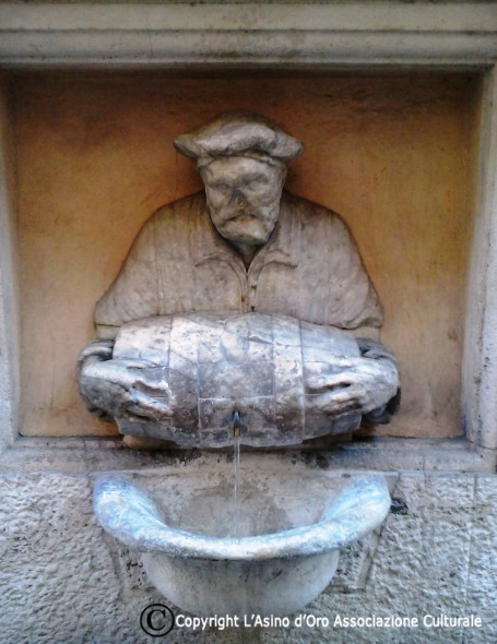 La statua del Facchino, inserita in una piccola fontana, fu realizzata alla fine del 1500 ed è la più recente del gruppo. Rappresenta una figura maschile ritratta mentre versa acqua da una botte: l’abito indossato dalla figura è il costume tipico degli “acquaroli” riuniti nella corporazione dei facchini, da cui prende il nome lo stesso personaggio. Nelle ore notturne gli “acquaroli” riempivano botti e botticelle con l’acqua attinta dal Tevere o dalle tre bocche dell’antica fontana di Trevi e durante il giorno la distribuivano per le strade di Roma.