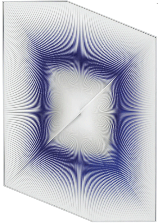 rilievo in PVC su tavola cm. 102x70x4, firma, titolo, anni, timbri Alberto Biasi con numero di registro e timbri del Gruppo Enne e della Galleria La Chiocciola al retro, dichiarazione d’autenticità dell’artista e Archivio Alberto Biasi n° T 483 su foto.