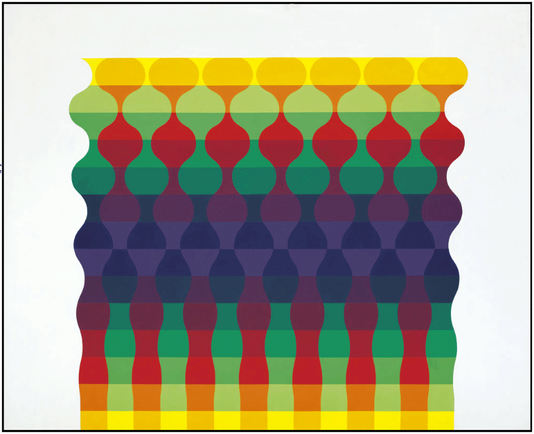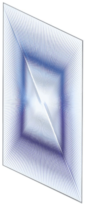 rilievi in PVC e inchiostro su tavola cm. 100x40x3, firma, titolo, anno, timbro con archivio e timbro Alberto Biasi del Gruppo Enne e timbro della Galleria La Chiocciola al retro, dichiarazione d’autenticità e numero di registro dell’artista su foto.
