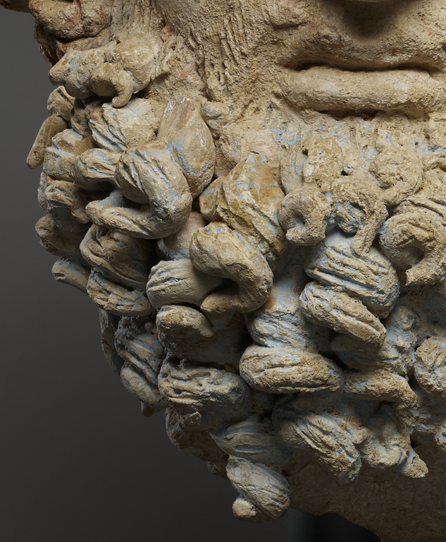 E qui alcune immagini di Barbabù, il dettaglio dei riccioli colorati di rosso e della barba con tracce di colore blu.