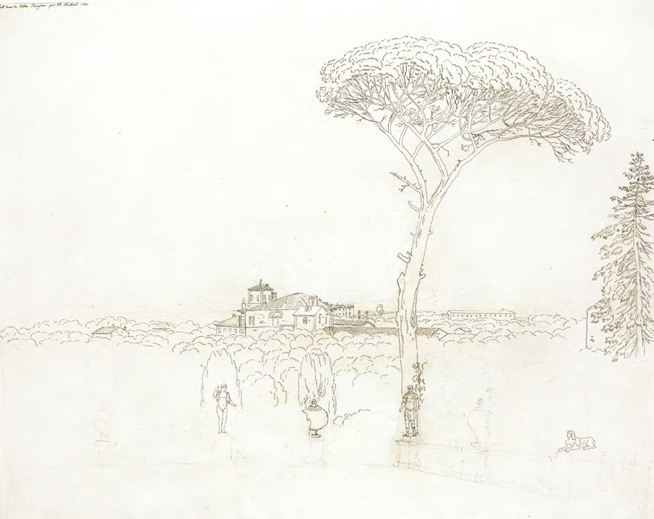 Firmato, datato e iscritto a penna e inchiostro bruno in alto a sinistra: fait dans la Villa Borghesi par Ph. Hackert 1781.