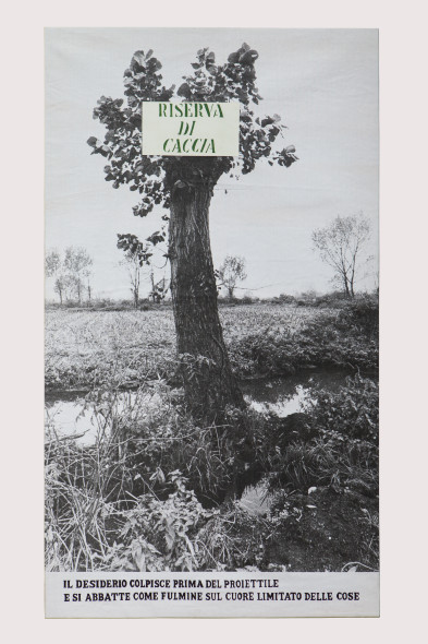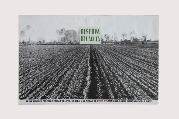 1978 Riserva di Caccia: un grande trittico in tela che appartiene a una serie di lavori sul tema del rapporto tra desiderio e accaparramento predatorio.