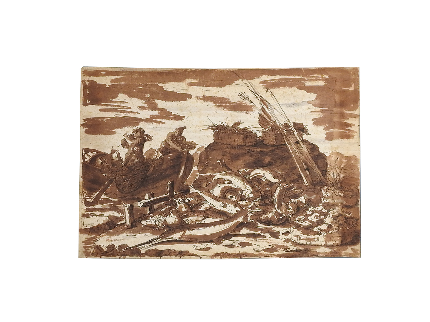 penna e inchiostro bruno, acquerello, tracce di matita su carta, mm 313×444