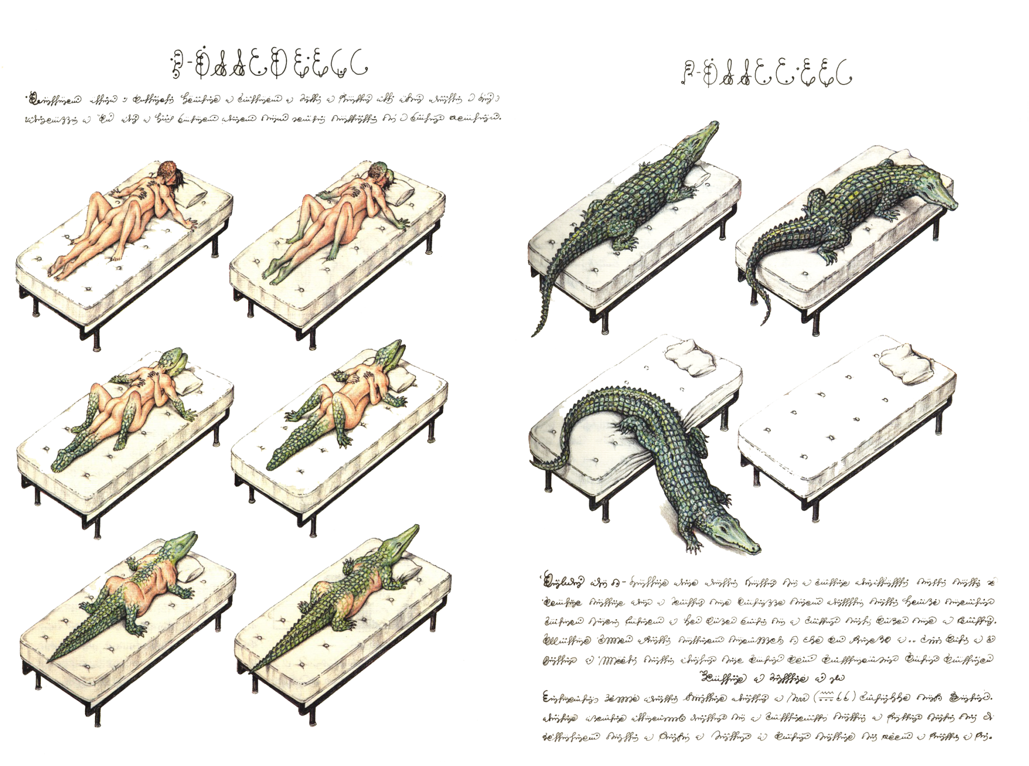 Macchine surreali, metamorfosi animali e vegetali, una sequenza di invenzioni colorate commentate da una scrittura immaginaria, il Codex Seraphinianus è un libro di culto, un codice miniato visionario e misterioso. Apprezzato da storici e critici dell’arte come Federico Zeri e Vittorio Sgarbi, il Codex ripercorre in chiave utopica e fantastica tutti i campi dello scibile, dalla zoologia alla botanica, dalla mineralogia all’etnografia, dalla fisica alla tecnologia: uomini tenaglia, amanti- coccodrillo, uova che volano, alberi capovolti.