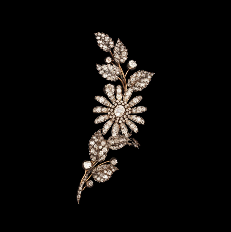 Diamonds mounted en tremblant and set in silver and gold, total circa 16 crts