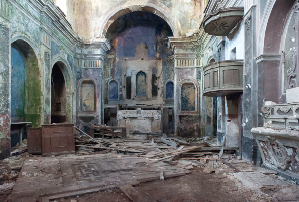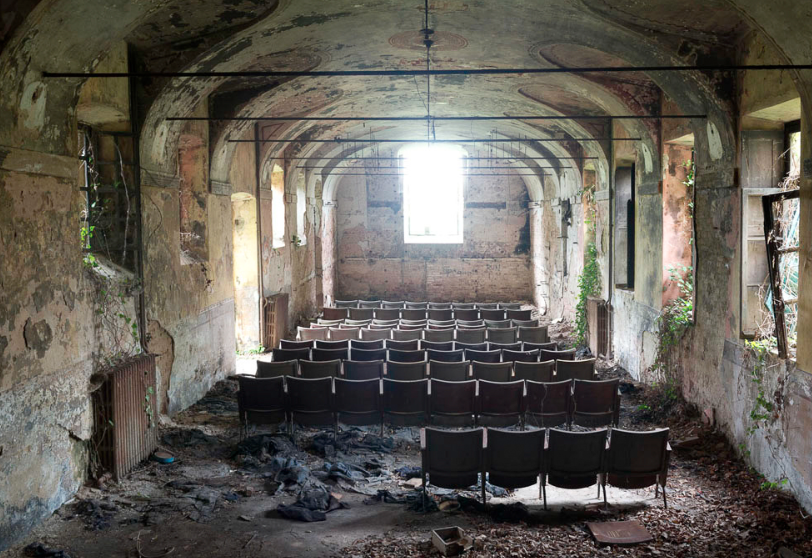 I borghi disabitati, le stanze dagli intonachi sgretolati, le strutture architettoniche fatiscenti oramai un tutt’uno con la vegetazione, gli oggetti e gli utensili quasi intatti in mezzo alle polverose rovine sono colti nel loro esistere infragilito dal tempo eppure ancora vitale. Ciò che infatti traspare dalle fotografie dell’artista è l’anima dei questi luoghi, le loro memorie e la loro storia. Spingendosi oltre il dato meramente documentario, Silvia Camporesi ha liberato gli stessi dalle sembianze di luoghi fantasma restituendoli ai nostri occhi più vivi e più forti di qualsiasi oblio. Sono tante le immagini in mostra capaci di catturare emozionalmente lo spettatore, da quelle che ritraggono l’ex manicomio dell’Osservanza di Imola a quelle che mostrano singoli oggetti che sembrano essere stati dismessi di recente, tutte in grado di introdurci in una realtà estrema tesa nel conflitto tra quello che è stato e ciò che ancora esiste e che diventa altro, attimo dopo attimo.