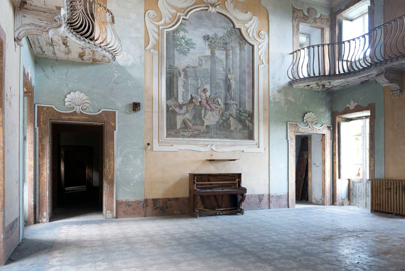 La vegetazione si allunga sulle facciate, invade gli interni cambiando il volto degli edifici che però interiormente rimangono gli stessi con la loro storia che continua a echeggiare dalle loro mura; la muffa ricopre le pareti, ma ancora la luce ci restituisce il loro biancore immacolato senza perdere il filo con il passato, lo stesso che ancora potrebbe fare squillare quel telefono blu ricoperto di polvere. Quasi basterebbe ripulirlo per sentirlo risuonare come prima. Visitare la mostra Atlas Italiae è come vivere un estatico abbandono che serba il fascino del presente e il mistero del futuro. Una mostra da non perdere.