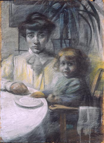Umberto Boccioni, La moglie di Balla con la figlia (1906)