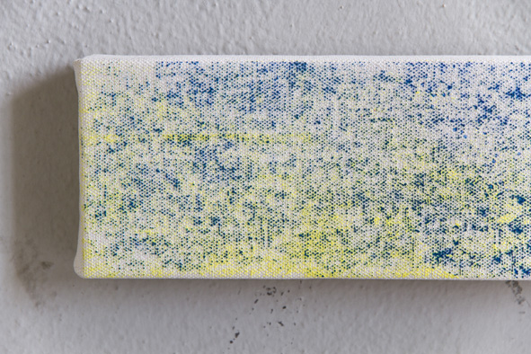 Israel Lund ha ideato un procedimento di serigrafi a su tela grezza, in cui è l’artista stesso a manipolare gli esiti visivi della vernice acrilica sulla tela dosando la propria forza nella pressione della spatola sul supporto. Il risultato ottenuto presenta iconografi e astratte e pixellate, dall’effetto simile a quello ottenuto ingrandendo talmente tanto un’immagine fino a farne esplodere la figura. Sulle opere affiorano pattern e campiture dagli effetti ogni volta diversi, la struttura formale delle tele e il loro posizionamento dello spazio riallacciano immediatamente un dialogo con il Minimalismo degli anni Sessanta e l’idea di modularità e scalabilità dell’opera d’arte.