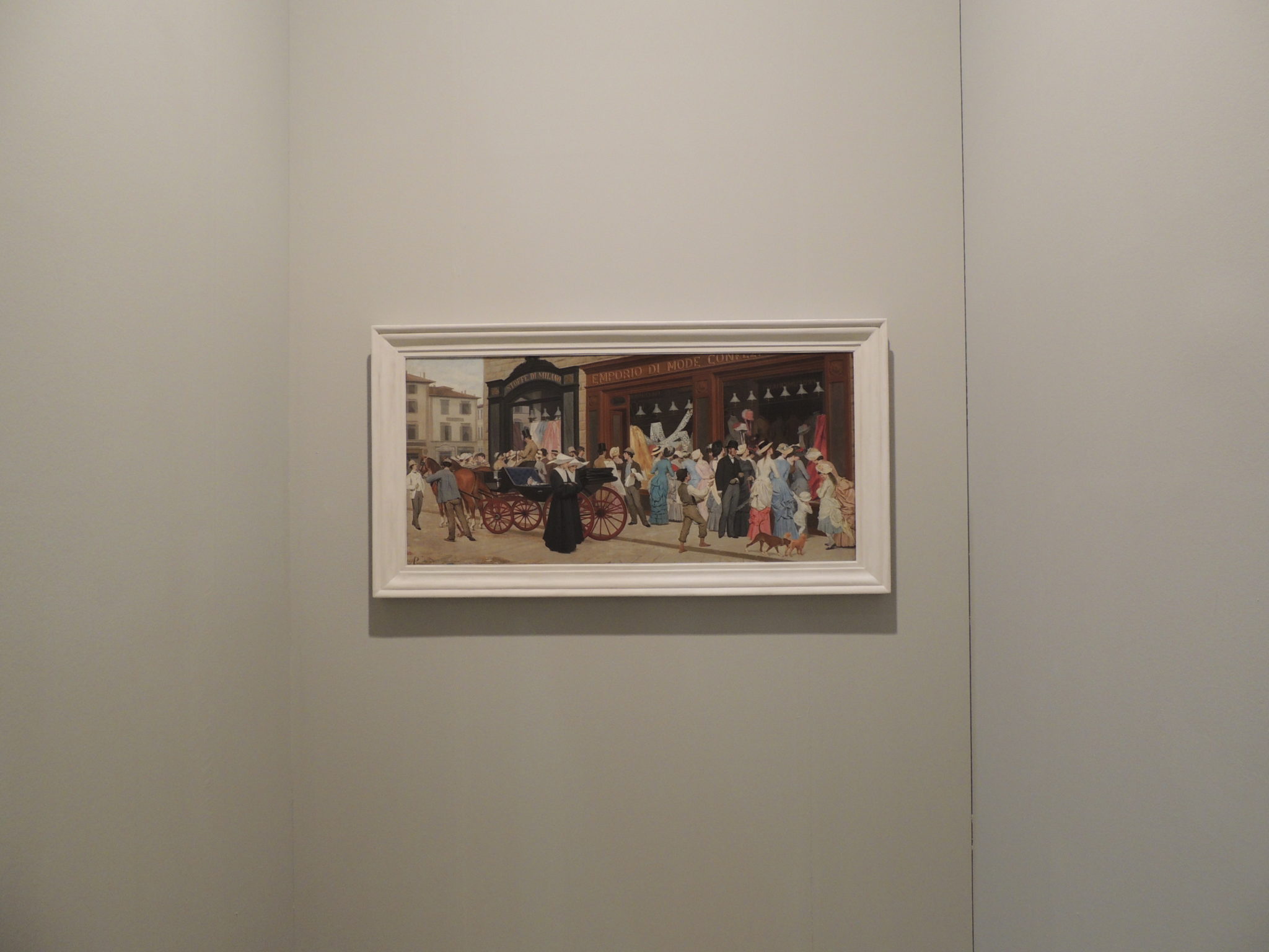I due spazi sono idealmete divisi dal dipinto “La Moda” di Antonio Puccinelli (che ha recentemente realizzato il nuovo record d’asta per l’autore con 149 mila euro da Pandolfini a Firenze) e che vuole omaggiare il mondo della moda e la città di Milano.