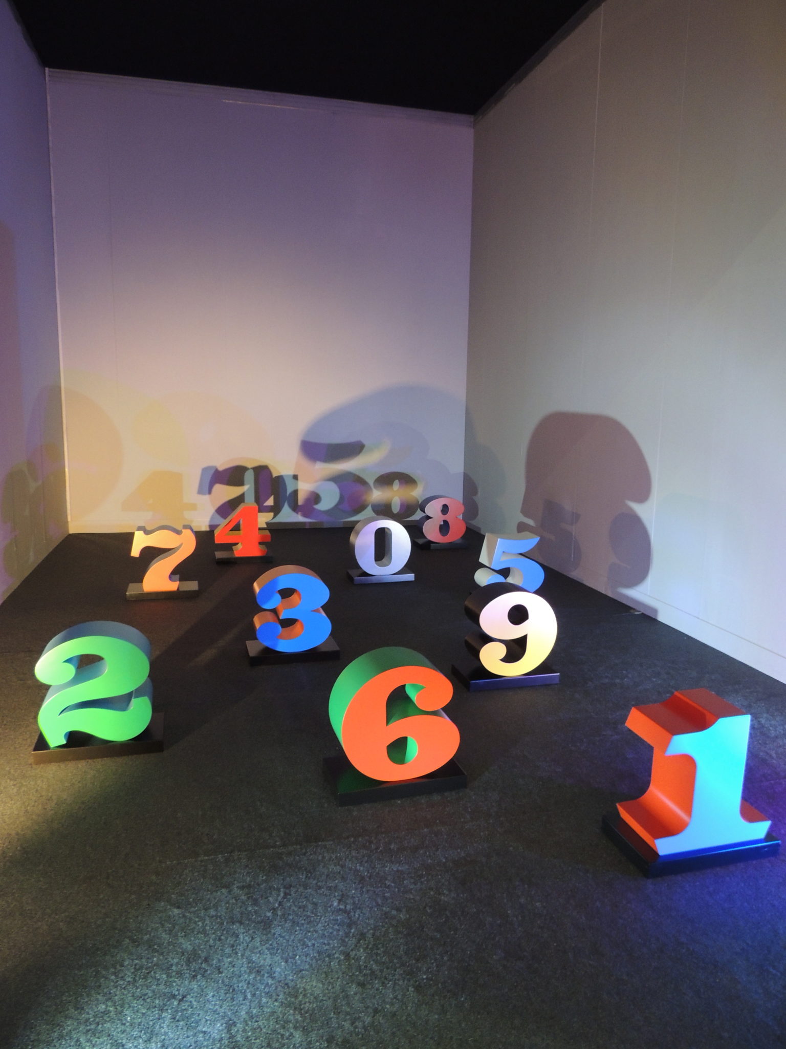 Camminando ancora oltre verso il confine del padiglione un altro tuffo nell’arte classica moderna da Frediano Farsetti (Firenze) con Massimo Campigli, Carlo Carrà, Giorgio de Chirico, Filippo de Pisis, fino ad arrivare alla Galleria d’Arte Maggiore G.A.M. (Bologna, Parigi) che ha allestito una saletta intera per Robert Indiana e la sua serie di numeri, illuminati da luci colorate, “One through Zero (the Ten Numbers)”.
