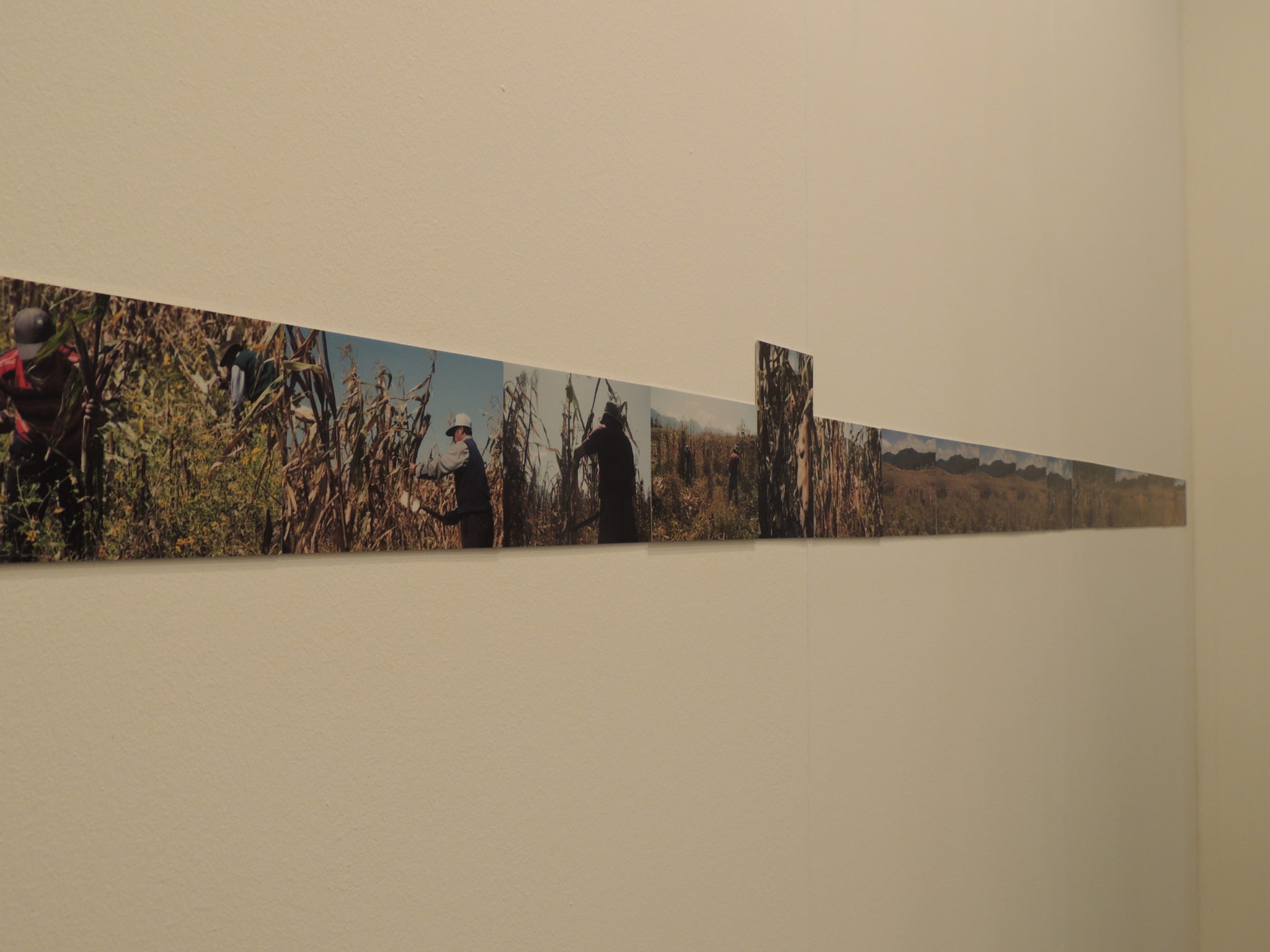 «E’ stata realizzata in Guatemala, in un paesino dove i contadini hanno resistito alla Legge Monsanto, che metteva a rischio la cultura del mais e l’autonomia alimentare del paese. Regina si è messa in mezzo a un campo di mais che è stato tutto falciato e lei è rimasta sola, come se fosse l’unica pannocchia: Regina in questa performance lascia il suo corpo individuale e diventa un corpo collettivo che rappresenta tutti i contadini che hanno lottato per il mais. La serie qui esposta documeta l’azione, sono 21 piccole fotografie (mentre solitamente i formati di Regina sono più grandi) e il prezzo è di 7mila euro».