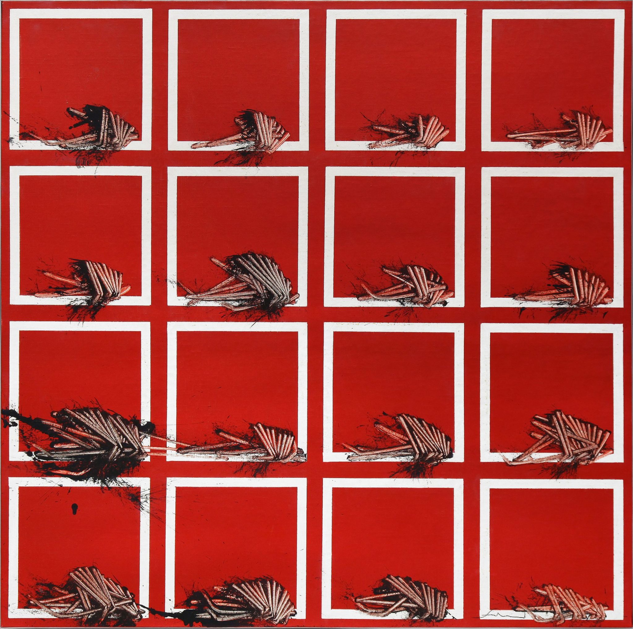 Tra e opere in mostra anche Nascosto 1, rarissima tela del ’68, che viene ripresentata al pubblico dopo essere rimasta celata allo sguardo per decenni. Nascosto 1 rappresenta un esempio della produzione degli anni più sperimentali di Scanavino. In questo periodo è particolarmente in luce un aspetto importante, che suggerisce una nuova chiave di lettura dell’opera dell’artista, legata alla natura dello spazio. Il vuoto inteso come campo infinito è reso tale ed esaltato dalla presenza di una geometria, una struttura sospesa nella purezza della monocromia del colore, in cui si annida l’espressione del linguaggio.