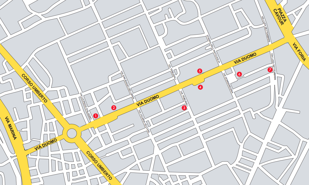 Il Museo Civico “Gaetano Filangieri”, il Complesso Monumentale di San Severo al Pendino, il Pio Monte della Misericordia, il Monumento Nazionale dei Girolamini – Quadreria e Chiostri, il Museo del Tesoro di San Gennaro, il Complesso Monumentale Donnaregina – Museo Diocesano e il MADRE – Museo d’Arte Contemporanea Donnaregina, scrigni d’arte, puntano sulla realizzazione di un percorso culturale di grande impatto lungo via Duomo, in grado di trasformarsi anche in un grande attrattore turistico.