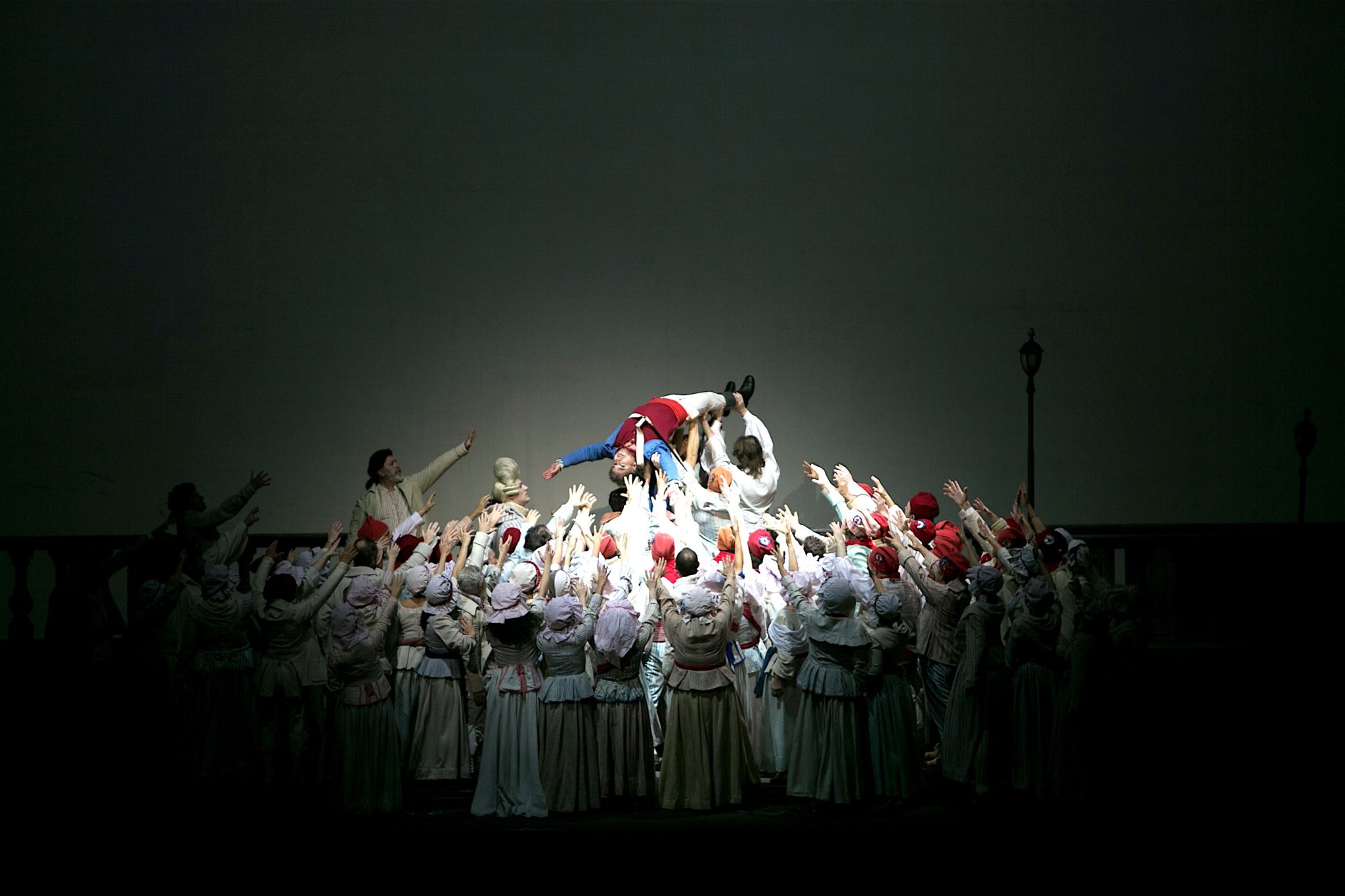 La direzione dell’Orchestra del Carlo Felice è affidata a Giampaolo Bisanti, il quale ha svolto una particolare opera di finitura, dedicando particolare cura a sottolineare le qualità liriche dell’opera di Giordano. Le scene realizzate da Paolo Bregni e i costumi curati da Luisa Spinatelli ricostruiscono le tragiche vicende del periodo storico nel quale è ambientata l’opera, con una cura ed una ricchezza scenica quasi cinematografica, paragonabile al musical Les Misérables di Tom Hooper. Imperdibile.