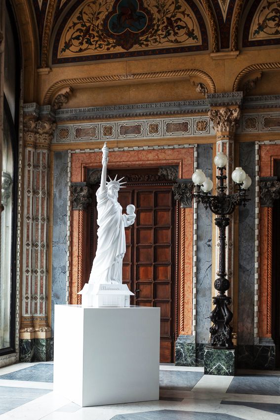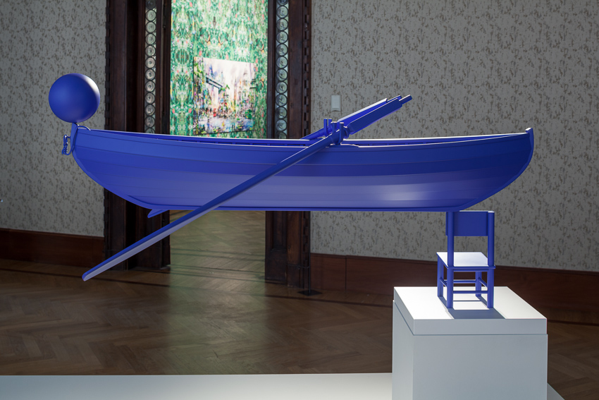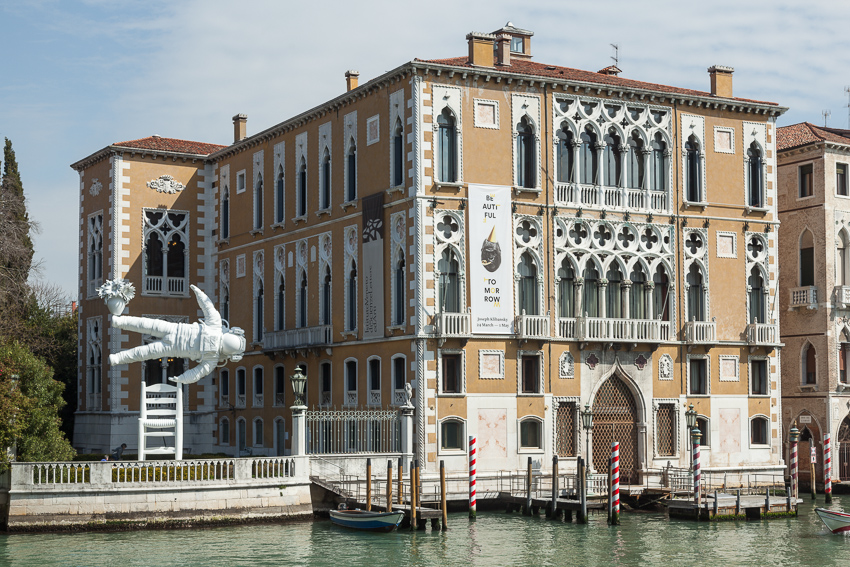 Un astronauta di sette metri atterrato in bilico su una sedia lungo la sponda del Canal Grande. Un gorilla accigliato che suona una trombetta da party nel salone di un palazzo nobile. La giungla che cresce tra i broccati di seta e rivela una piccola scultura dorata.