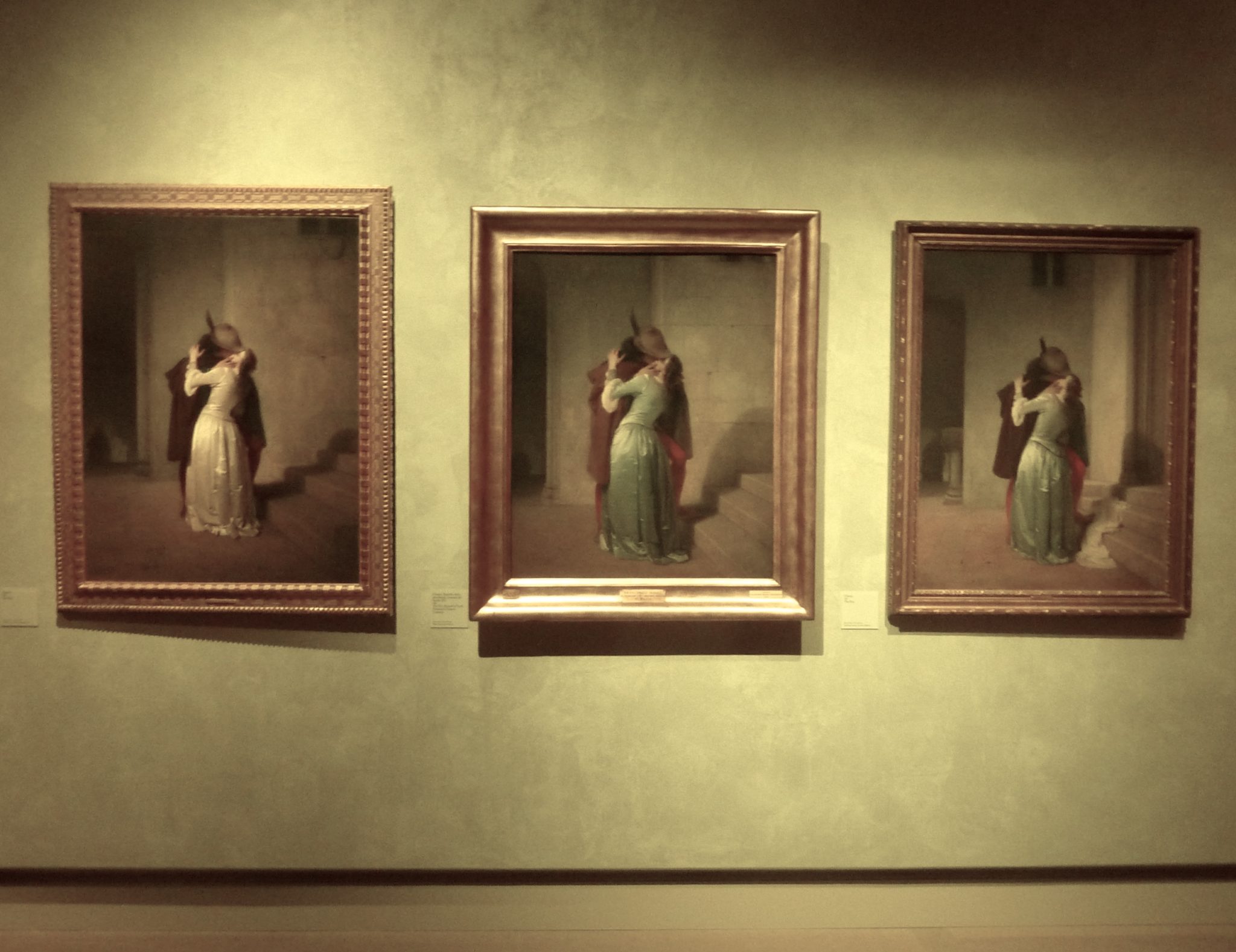 Si tratta di una delle tre versioni de Il bacio che è stata in mostra a Milano fino a febbraio scorso alle Gallerie d’Italia in piazza della Scala. L’esposizione meneghina è stata un successo e ha attirato oltre 180 mila visitatori. Un’altra versione del famoso dipinto del 1861 era stato venduto all’asta nel 2008 da Sotheby’s per 780.450 sterline, pari a 1.215.706 dollari.